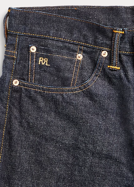 Relaxed-fitting jeans made in America from Tennessee-grown cotton. Yarn is ring-spun and rope-dyed in Japan using natural indigo. Woven on vintage wooden shuttle looms to create 15.92 oz. right-hand twill that is exclusive to Double RL. Selvedge construction inspired by 1930s denim styles.