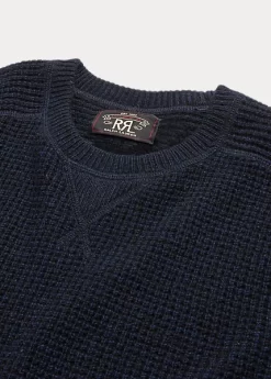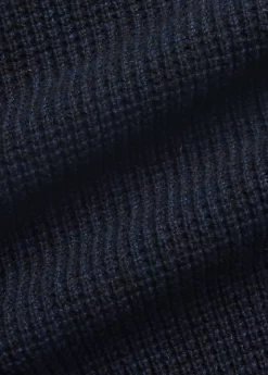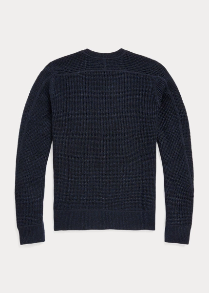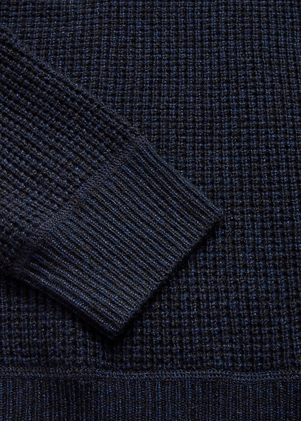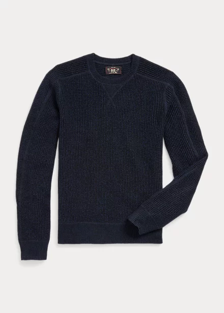 Made with cashmere yarn. Waffle-knit construction. Ribbed cuffs and hem.