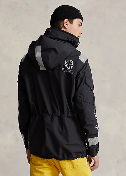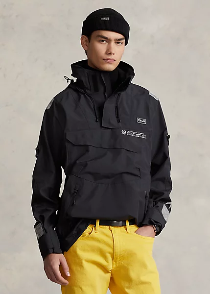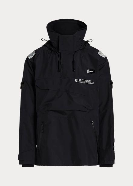 Engineered for high performance, this pullover jacket is constructed with a stowaway hood, three-layer fabric and a fully seam-sealed interior for superior protection against the elements. It also features reflective logos and patches.
