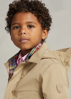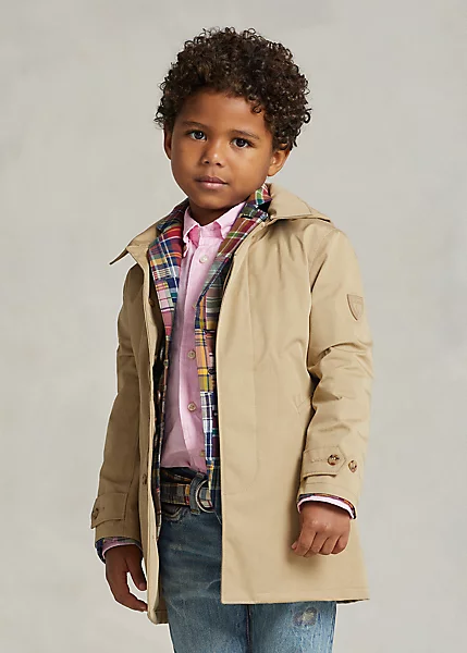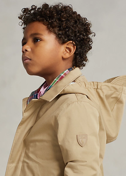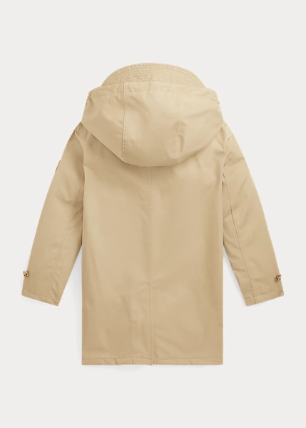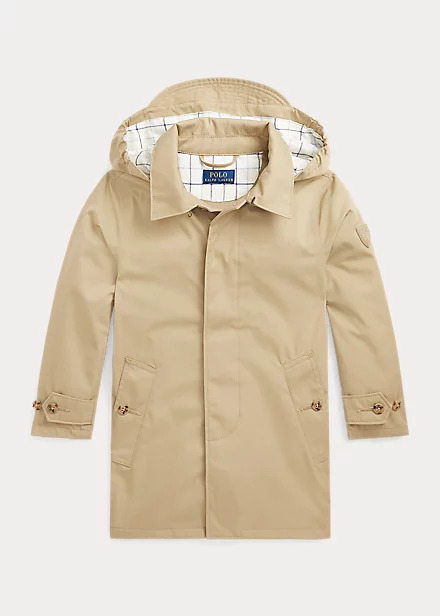 This hooded version of Ralph Lauren’s iconic walking coat is crafted with water-repellent twill and features a fully seam-sealed interior.