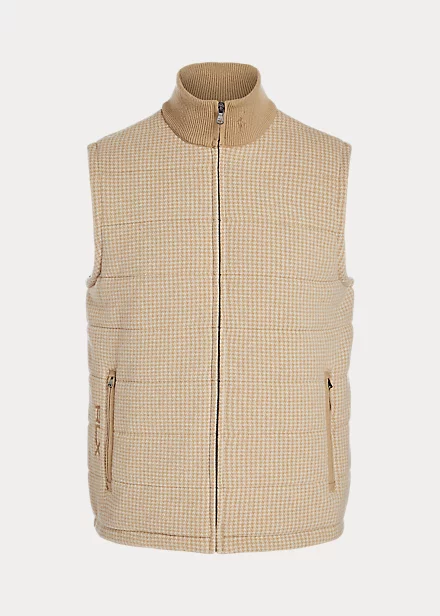 This quilted vest is knit from warm wool and insulated with a down-fill alternative.