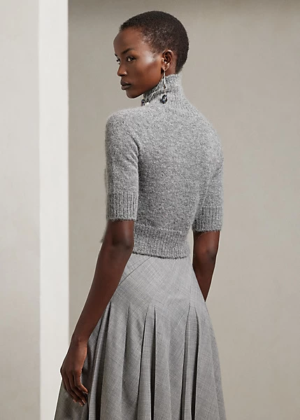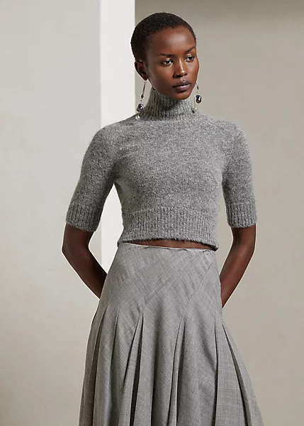 Designed with a cropped silhouette for a playful look, this short-sleeve roll neck jumper combines an alpaca wool yarn with lurex filament to add subtle shine throughout. Italian-made, this essential style is specially washed for a soft hand feel.