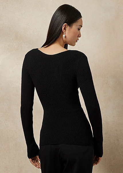 An elevated essential, this long-sleeve V-neck jumper is designed with a wrap-front detail for a flattering silhouette. Made in Italy, this jumper is rendered in our classic ultra-fine merino wool for a soft hand feel.